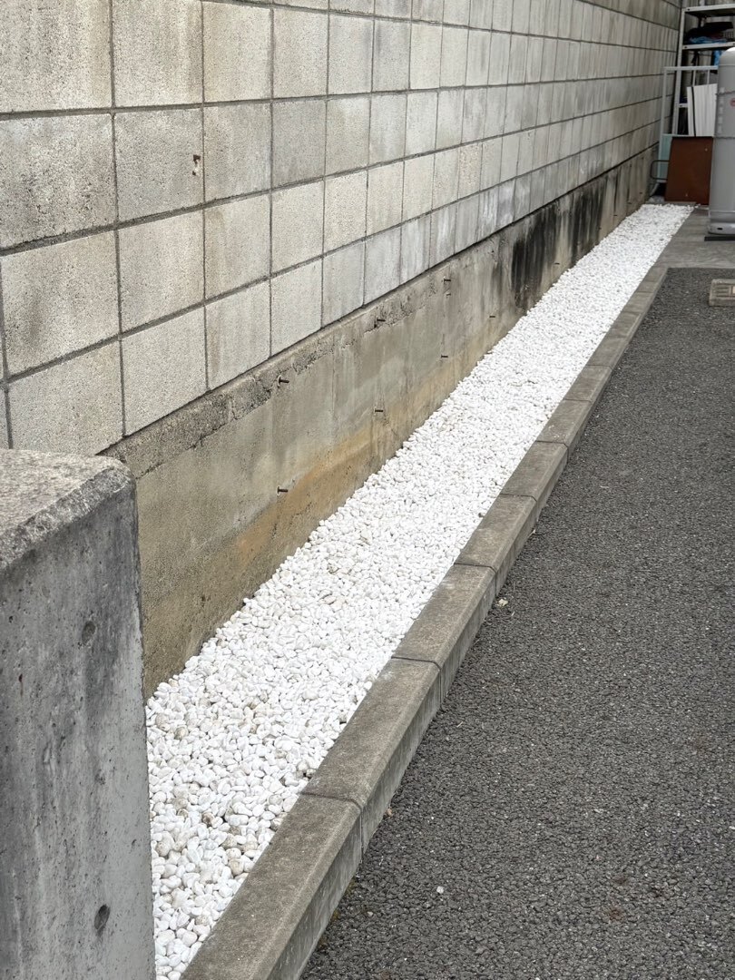 白い砂利にすることで、全体が明るくなり、清潔感のある印象になっています。ビルとの相性もバッチリです✨