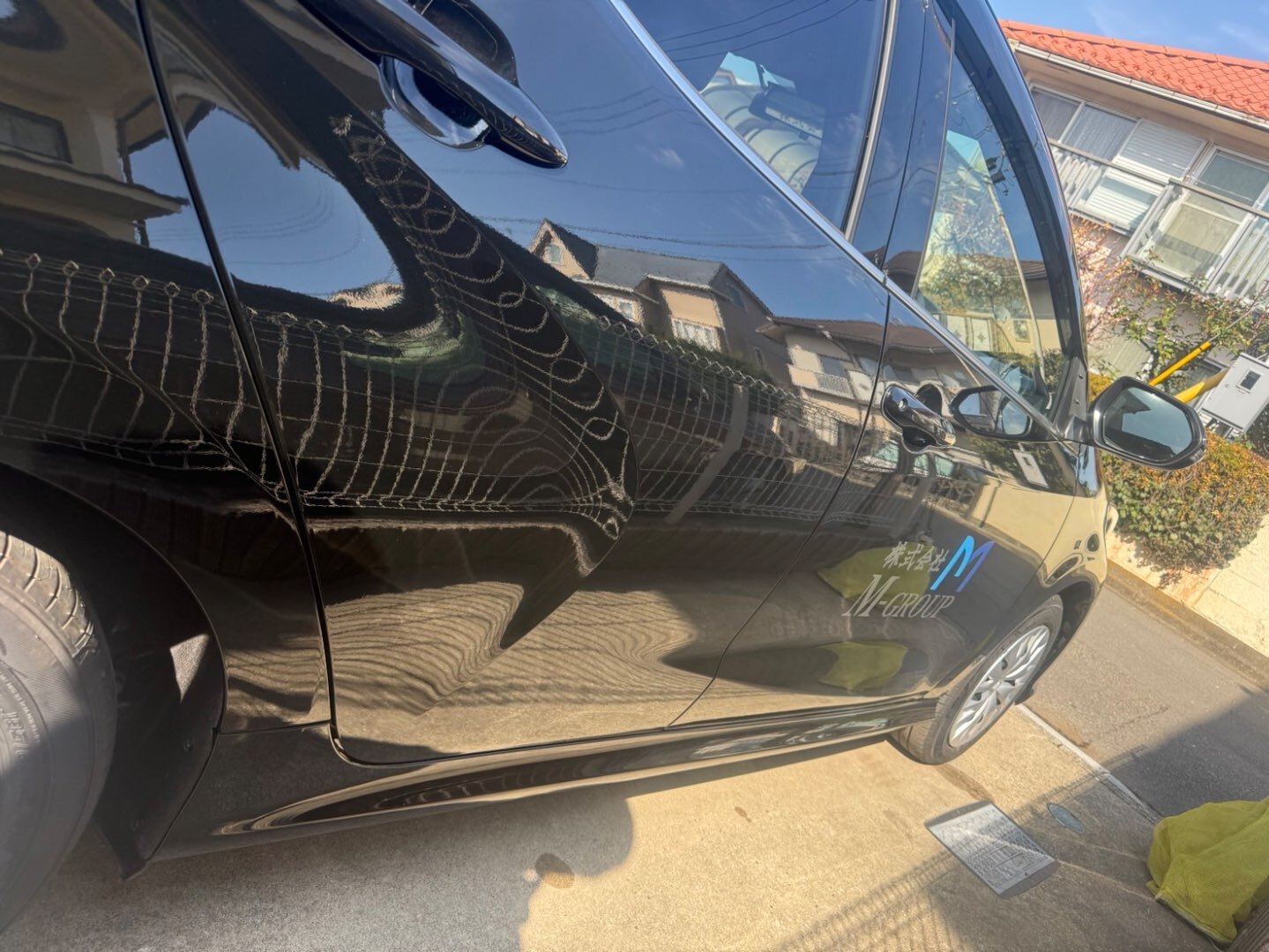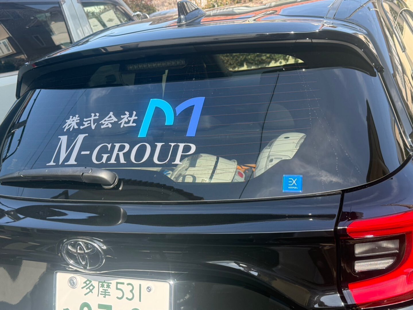 ブラックのボディに、弊社ロゴ「M-GROUP」のステッカーを施工。